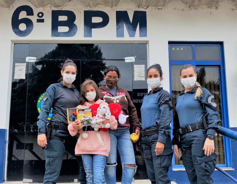 As policiais femininas, juntamente com o comandante do 6ºBPM, Tenente Coronel Elcio, se prontificaram em receber a pequena, e ao final, depois de conversas de incentivo a presentearam neste dia especial. Sucesso, é que o desejamos a você Rafaela! Brilhe!