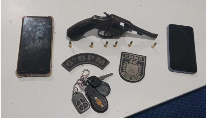 Logo após, foi realizado a revista dentro do veiculo, sendo localizada uma arma de fogo. Indagados quem seria o proprietário, ambos negaram ser donos da arma de fogo. Os indivíduos foram detidos e encaminhados para a Primeira Delegacia de Polícia Civil para providências cabíveis ao caso.