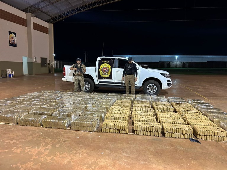 No local, os agentes da Senad encontraram outras 2.337 kg de droga (maconha) já embalada, além de outros apetrechos utilizados para a preparação e distribuição do entorpecente.