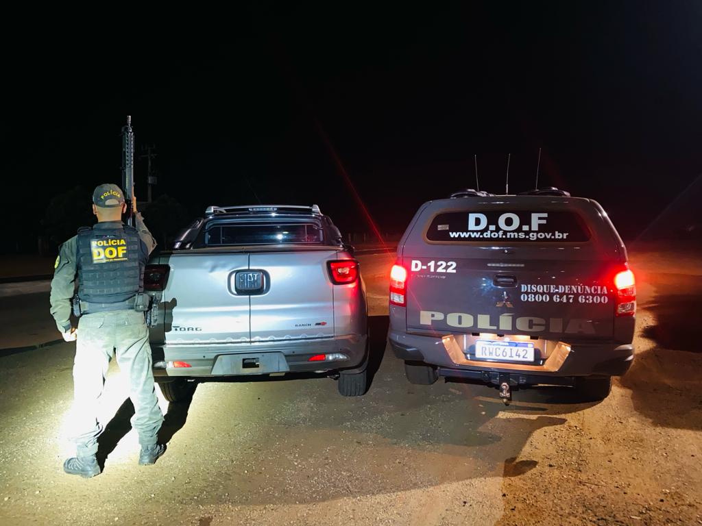Uma Fiat Toro roubada na cidade de Nova Aparecida (SP) em março deste ano, foi recuperada por policiais do DOF (Departamento de Operações de Fronteira) neste domingo (05), na MS-164 em Ponta Porã. Um homem de 26 anos de idade, que conduzia o veículo foi preso em flagrante.