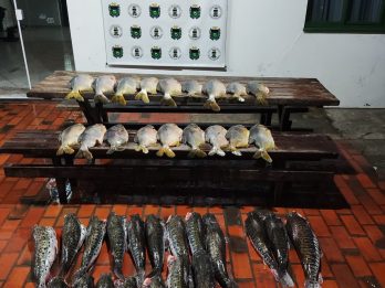 Diante dos fatos, os policiais apreenderam um total de 08(oito) redes de pesca, somando 600 metros de comprimento, e 108kg de pescado, incluindo espécies como pintado, cachara e pacu. Todo levantamento feito e material apreendido foi encaminhado para Delegacia de Polícia Federal, para as devidas providências.