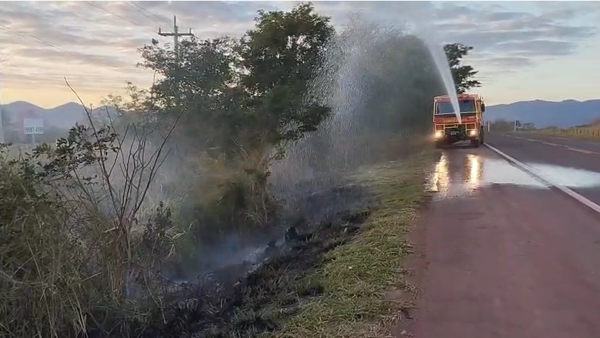 06 h 00 - BR 262 trecho anel viário próximo ao aeroporto visa- Incêndio as margem da rodovia
