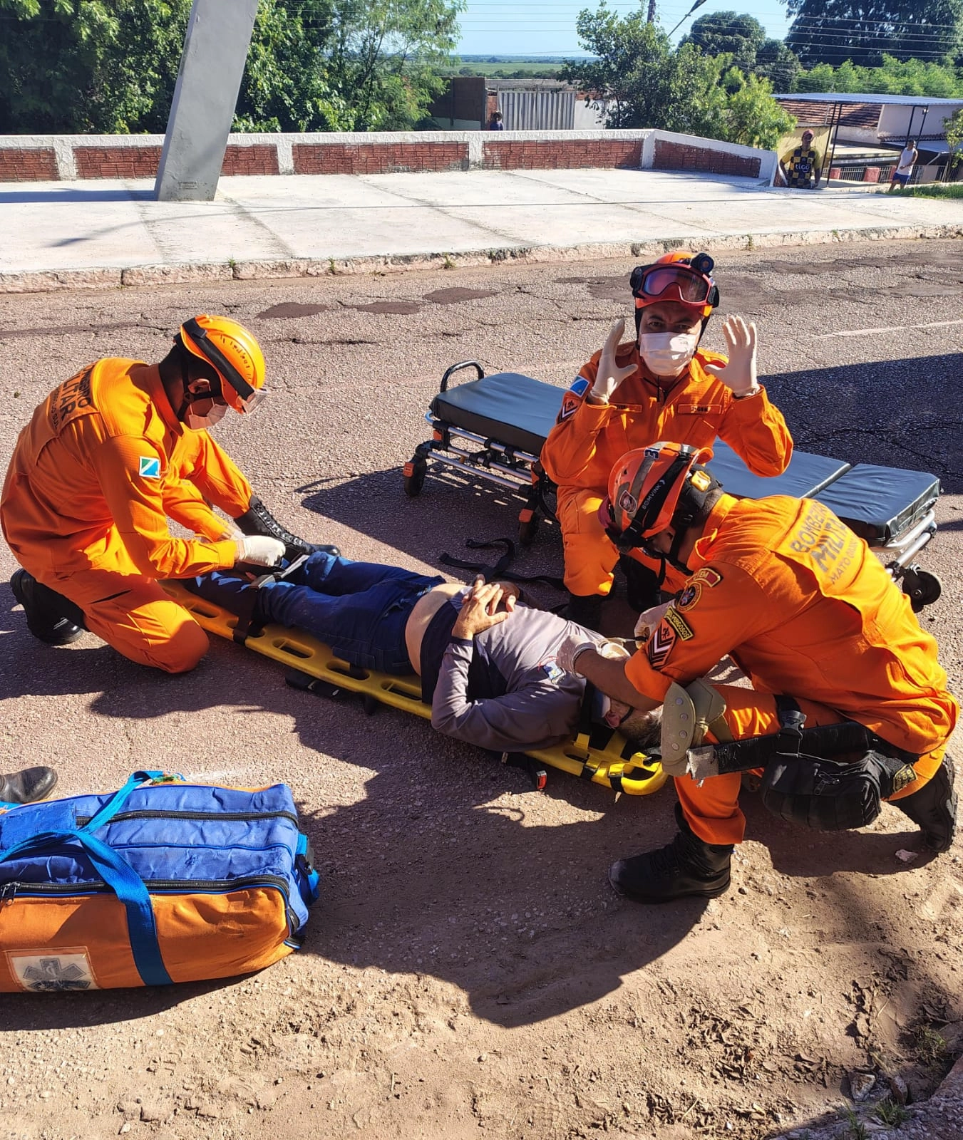 A equipe de resgate do Corpo de Bombeiros foi acionada para prestar atendimento a um dos motociclistas, identificado como G.P.F., de 68 anos. Segundo informações repassadas, a vítima foi encontrada caída ao solo, em decúbito dorsal, consciente e orientada. Ele apresentava fortes dores no tornozelo direito, além de sangramento no hálux (dedão) do pé direito, em decorrência da colisão e da queda.