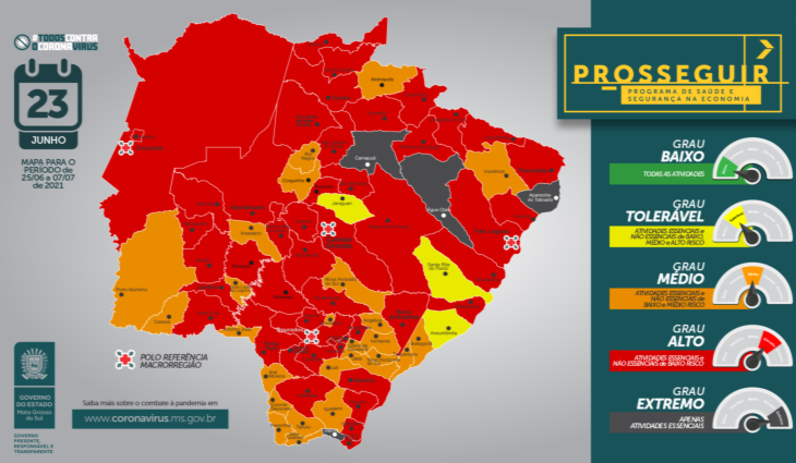 - Bandeira vermelha: permite o funcionamento de atividades essenciais e não essenciais de baixo risco;