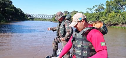 PMA e Bombeiro passando ganchos ao fundo do rio.