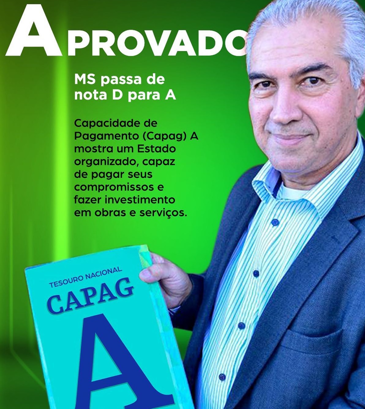 A estabilidade fiscal de Mato Grosso do Sul rendeu nota A na avaliação da Capag (Capacidade de Pagamento) da Secretaria de Tesouro Nacional. A classificação foi enviada ao Governo do Estado na tarde desta segunda-feira (19) via ofício do Ministério da Economia e ainda será publicada no Diário Oficial da União.