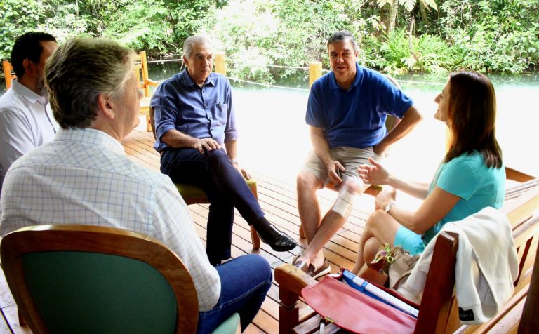 Em Campo Grande para participar de um fórum de instituições de fomento à pesquisa, a ministra conselheira da União Europeia Ana Beatriz Martins teve um encontro nesta quarta-feira (30) com o governador Reinaldo Azambuja e seu sucessor, Eduardo Riedel. Na reunião, no receptivo do governo, Riedel e Reinaldo Azambuja apresentaram o programa Carbono Neutro, que irá neutralizar a emissão de gases causadores do efeito estufa até 2030.
