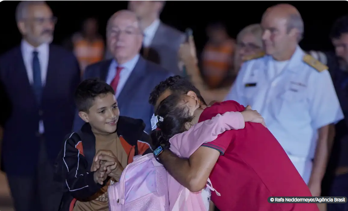 A chegada dos 32 repatriados da Faixa de Gaza na noite dessa segunda-feira (13) foi marcada por muitos abraços e muita emoção. Assim que duas crianças desceram da aeronave VC-2, da Força Aérea Brasileira (FAB), um homem correu para abraçá-las na pista da Base Aérea de Brasília, momento acompanhado por todos que foram recepcionar o grupo resgatado da região mais afetada pelo conflito entre Israel e o Hamas.