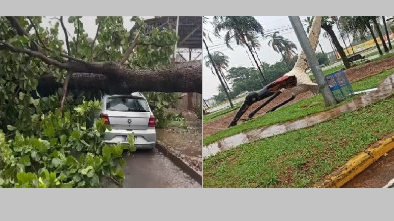 Até agora, foram registradas ocorrências de queda de árvores e falta de energia elétrica na região do Jardim Aeroporto, Jardim Imá, Jardim Petrópolis e Taveirópolis, por exemplo. O vídeo abaixo publicado pelo Passeando Campo Grande mostra a árvore que caiu em cima de um veículo no Jardim Petrópolis.
