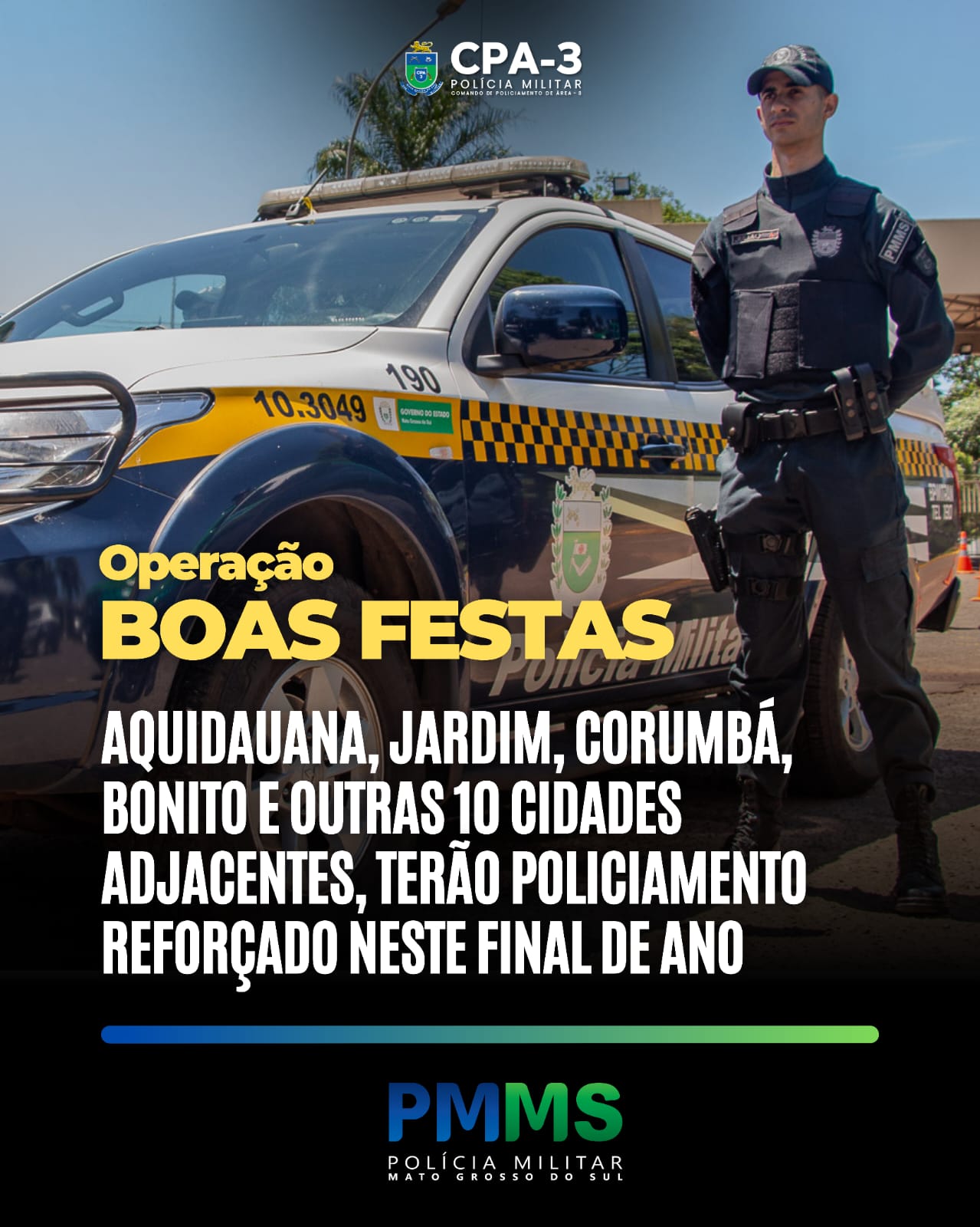 A Polícia Militar de Mato Grosso do Sul lançou hoje (11) a tradicional “Operação Boas Festas”, que se estenderá por todo o Estado até o dia 05 de janeiro de 2024.