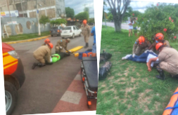 ENCONTRA-SE AO SOLO APRESENTANDO LUXAÇÃO NO TORNOZELO ESQUERDO.