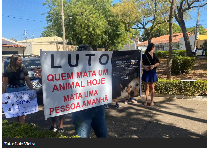 Com cartazes, os manifestantes pediram justiça por Sofia O crime foi flagrado por câmeras de segurança das casas próximas ao local. As imagens mostram o momento em que o homem caminha pela rua com um machado na mão. Ele procura pelo gato. O animal sai debaixo do carro e corre. O homem vai atrás e, quando o gato passa por ele na calçada, ele arremessa o machado e atinge o animal. Veja: