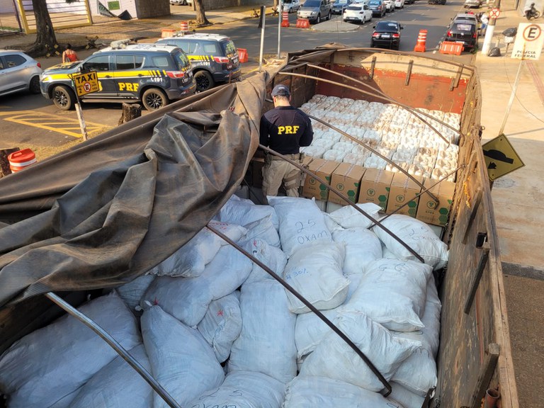 Polícia Rodoviária Federal (PRF) apreendeu cerca de 4 toneladas de agrotóxico, nesta terça-feira (01), em Ponta Porã (MS). Três homens foram presos.