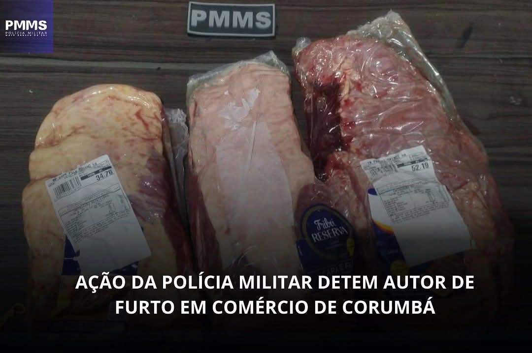 No local, a equipe entrou em contato com o solicitante, que relatou ter detido um indivíduo na saída do mercado com três embalagens de carne a vácuo escondidas na cintura.