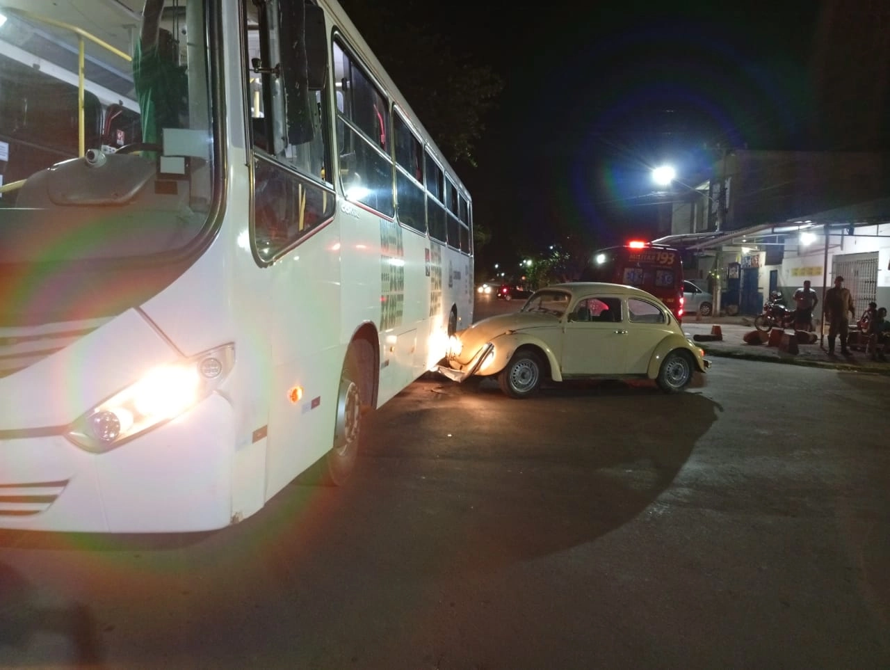 21h35 – Colisão entre ônibus e Fusca no bairro Cristo