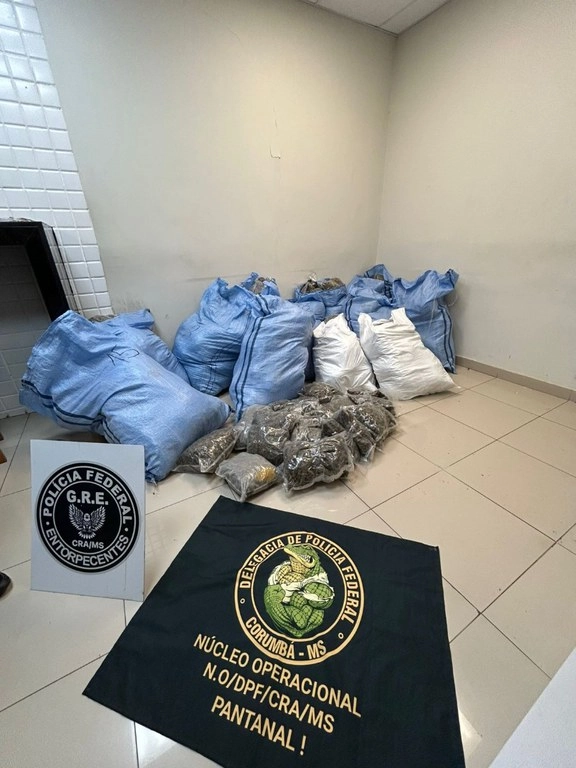 PF, com o apoio da PMMS, apreende mais de 200 kg de drogas em Corumbá/MS